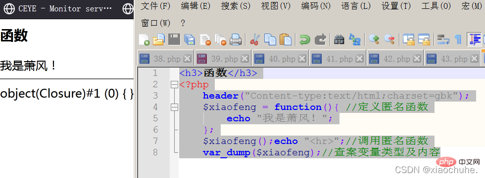 $xiaofeng();echo "<hr>";//调用匿名函数