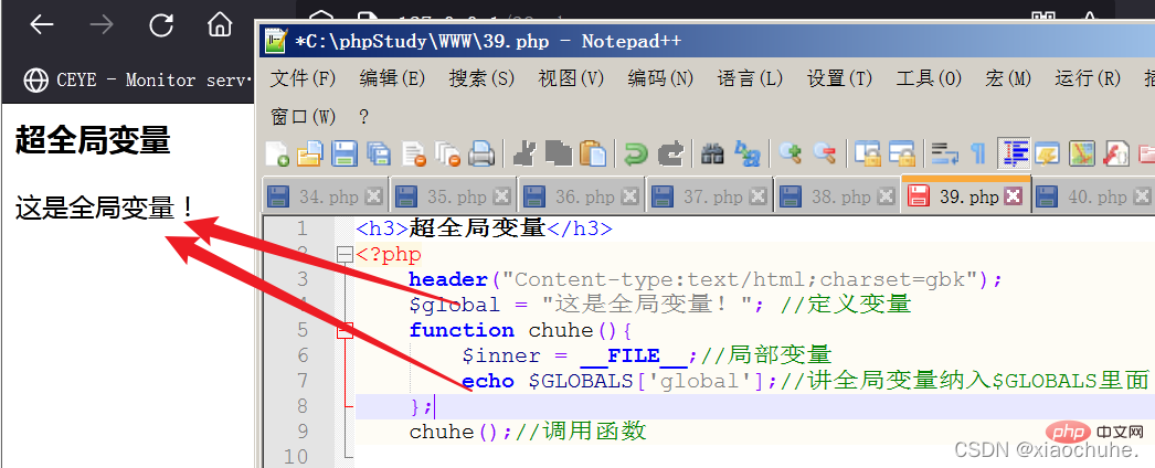 echo $GLOBALS['global'];//讲全局变量纳入$GLOBALS里面