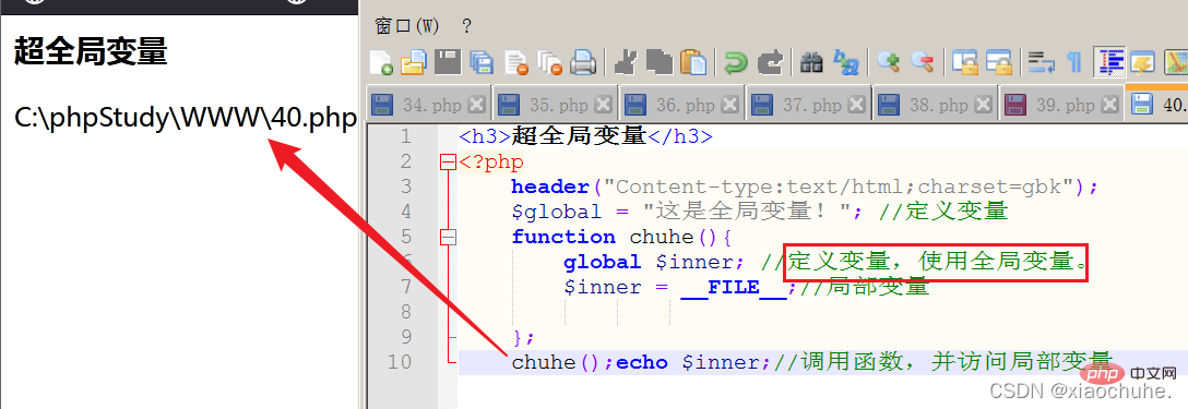 chuhe();echo $inner;//调用函数,并访问局部变量登录后复制