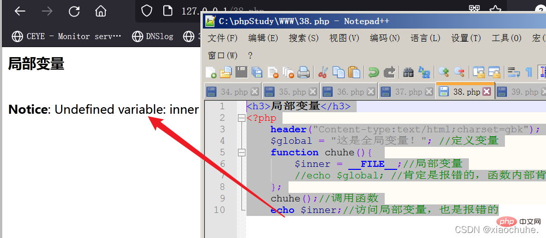 echo $inner;//访问局部变量,也是报错的登录后复制