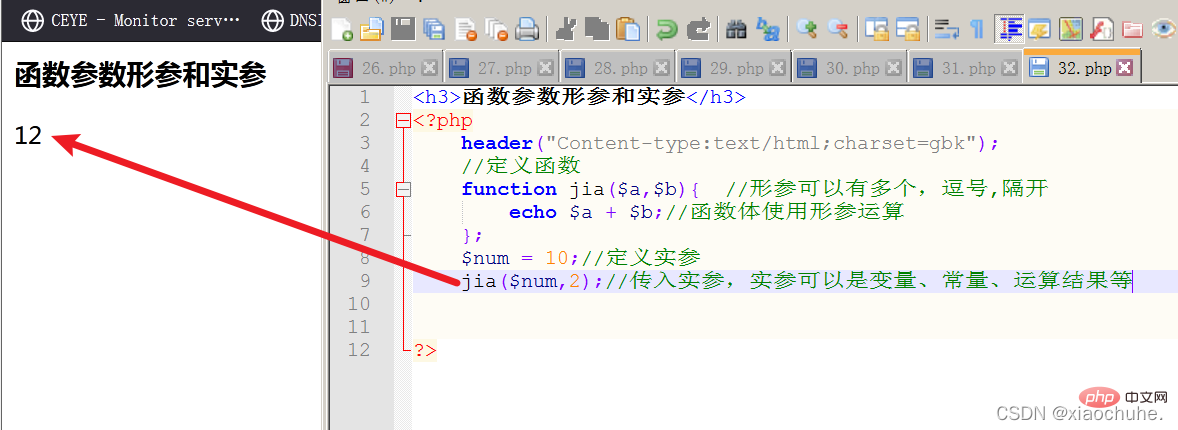 function jia($a = 6,$b = 4){ //此时$a是实参,编译不执行,属于jia函数内部,跟外面的$a=10不冲突。