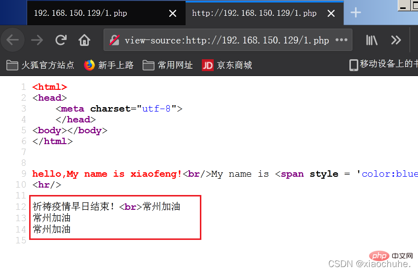echo "常州加油n常州加油n常州加油"; //也表示换行,只是浏览器不显示换行,源代码显示换行。