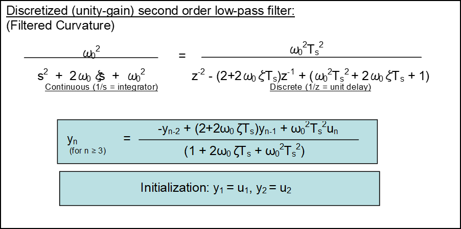 其中, ω0 = 2πf0, f0 为截止频率, ζ 为阻尼系数, Ts 为采样时间. 注: ζ = 1 (默认值) 为高阻尼系统。
