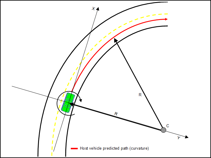 PP模块的目的采用车辆的动态信息来计算未来车辆行驶路径的连续曲线半径。简单来说,就是使用该车辆的速度和方向角的变化率(横摆角速度),通过物理方程来计算曲率。这个曲率可以用来推断车辆未来的路径。