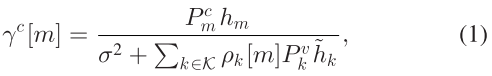 分别表示 m号CUE和 k号VUE 的发射功率,h是与 m号CUE相关的信道的增益,