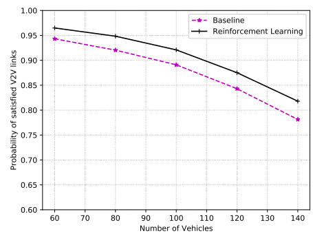 - 奖励:VUE的延迟约束 + 最小化VUE对CUE的干扰