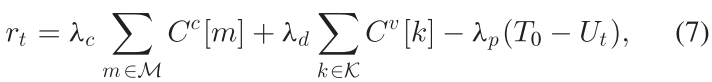 - 瞬时信道干扰功率:I_(t-1)=(I_{t-1}[1], ..., I_{t-1}[M])