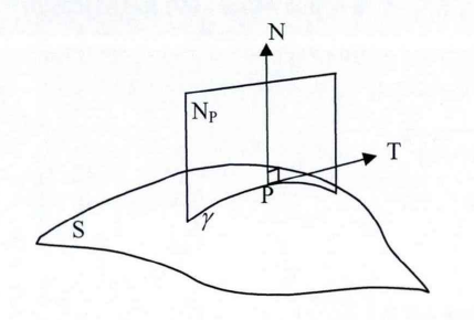 该切平面的法向成为曲面S在该点p的法向量N,对于曲面S上经过点p的任一条曲线r.