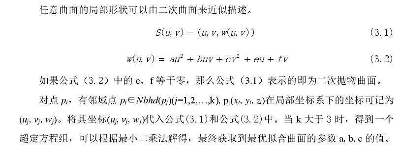 2.曲率的具体计算方法(只是最常用的一种,这使用的是最小二乘去拟合曲面)