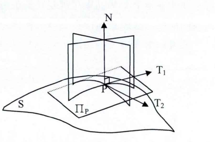 给定正则曲面S上任意采样点p,曲面S上经过点p的所有曲线在该点的切向量构成一个切平面#p,