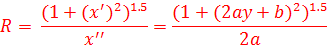 则在y米远处,曲率半径为: