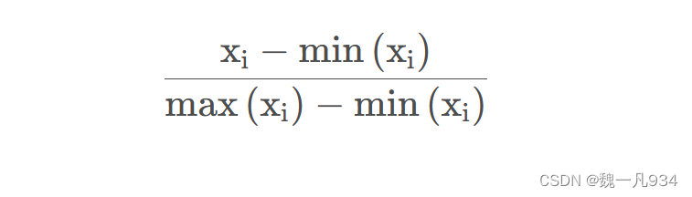 就是将训练集中某一列数值特征(假设是第 i i i 列)的值缩放到0和1之间。方法如下所示: