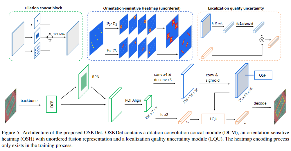 - 提出了一种基于关键点热图的有向检测器 OSKDet。为了更好地表示旋转目标,我们设计了一种方向敏感的热图,它能够了解旋转目标的形状和方向,对提高定位精度有着重要的作用。