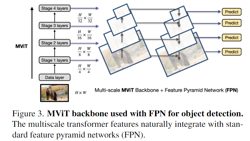 - 使用改进的 MviT 结构,我们采用了一个标准的密集预测框架: Mask R-CNN 和特征金字塔网络(FPN) ,并将其应用于目标检测和实例分割