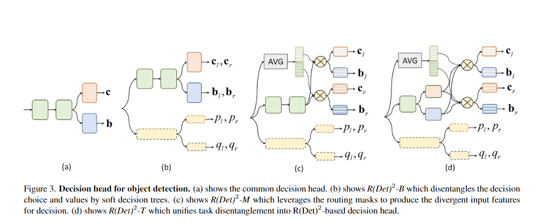 - 提出了一种新的目标检测决策头,该决策头引入路由概率和掩码,从多个节点产生发散决策,以提高整体决策效率