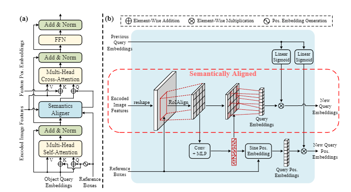 - 提出了 语义对齐匹配 DETR (SAM-DETR) ,它通过创新地将交叉注意解释为一个“匹配和提取”过程,并通过编码图像特征对目标查询进行语义对齐来促进其匹配,从而显著加速了 DETR 的收敛。