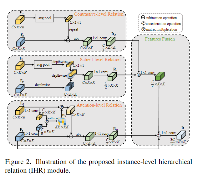- 针对 OSOD 任务,作者设计了一个功能强大的多级关系模块 IHR。同时利用对比度、显著度和注意度三个层次上的语义相似性,寻找查询图像块与目标图像之间更全面的关系。