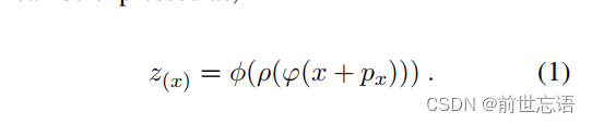 被一个编码器块φ摄取,该编码器块由6层Transformer编码器组成。使用全局平均池化层ρ对所有位置的特征进行集成,使用投影层φ将集成的特征向量投影到联合嵌入空间。因此最终嵌入z (x)可表示为