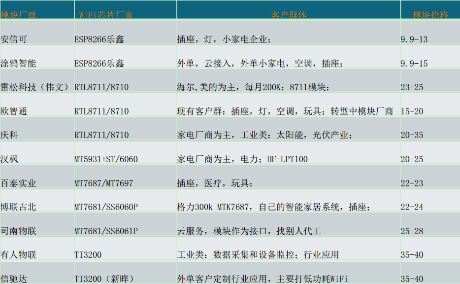 以上就是内向麦片最近收集整理的关于【IoT】WiFi 模组主流供应商的全部内容,更多相关【IoT】WiFi内容请搜索靠谱客的其他文章。