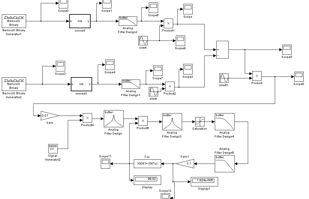 根据你的要求,你的课题分为MATLAB部分和FPGA部分,你所要求我们做的是MATLAB部分,在simulink环境下实现AGC的功能。由于AGC接收到的信号是通过QPSK调制以后的信号,所以我们的系统分为两个部分,QPSK调制部分和AGC增益控制部分。下面我们来详细给你介绍这个两个部分的设计流程。。。