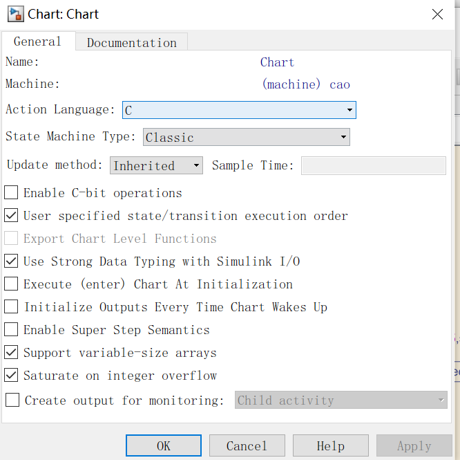 (4)命令行输入:sfnew -c 这是打开stateflow c语言编写的