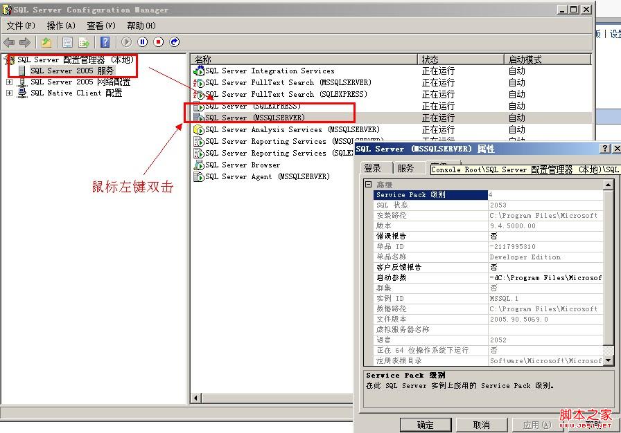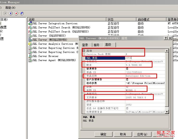 打开SQLSERVER配置管理器,然后用鼠标左键双击打开属性对话框,然后选择高级选项卡就可以看到SQL的版本信息