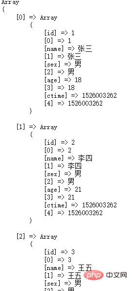 PDO::FETCH_BOTH --两者数组形式都有