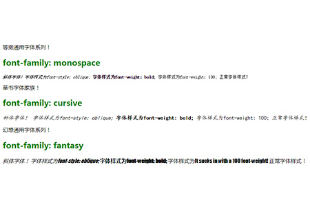 通常字体系列名称:比如:"serif"、"sans-serif"、"cursive"、"fantasy"、"monospace"
