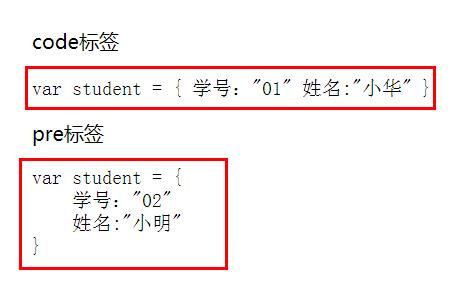 <code>元素内的文本显示不保留多余的空格和折行;但在 pre 元素中的文本通常会保留空格和换行符。