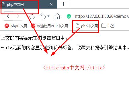 <p>title元素的内容显示在浏览器标签,收藏夹和搜索引擎结果中。</p>