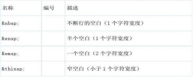 在HTML中的空格符号有: 表示不断行的空白; 表示半个空白; 表示一个空白等