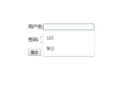 从上面的例子可以看出用户名那栏开启了自动完成,因此在输入时会显示以前输入的值,而密码那栏关闭了则不显示。