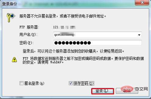 3.输入账号和密码:在用户名处输入服务器的管理账号,在密码处输入服务器的管理密码