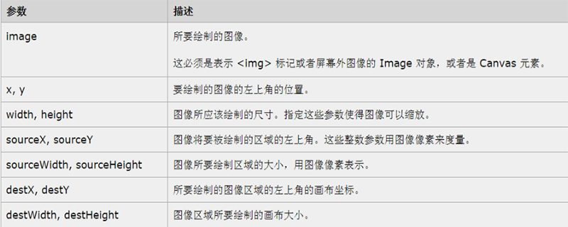 drawImage(image, sourceX, sourceY, sourceWidth, sourceHeight, destX, destY, destWidth, destHeight)