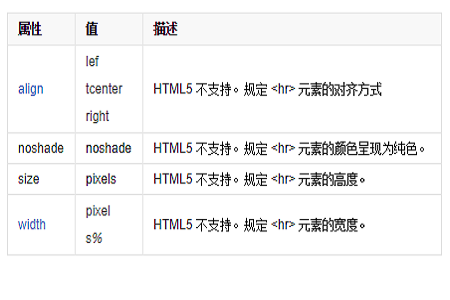 在 HTML 4.01 中,不赞成使用 hr 元素的 size、width、noshade、 align属性;在 XHTML 1.0 Strict DTD 中,不支持 hr 元素的这些属性,请使用 CSS 代替。