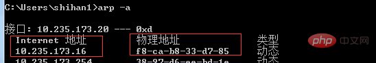 2.ping一下局域网其他主机 ping 10.235.173.16 ,此时ARP协议会把ip地址转成mac地址,存在缓存里,使用arp -a命令查看