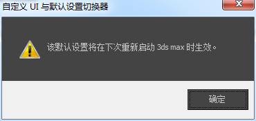 7、点击设置后,会弹出加载自定义和重新启动max的提示,这里我们点击确定,然后重新打开max。