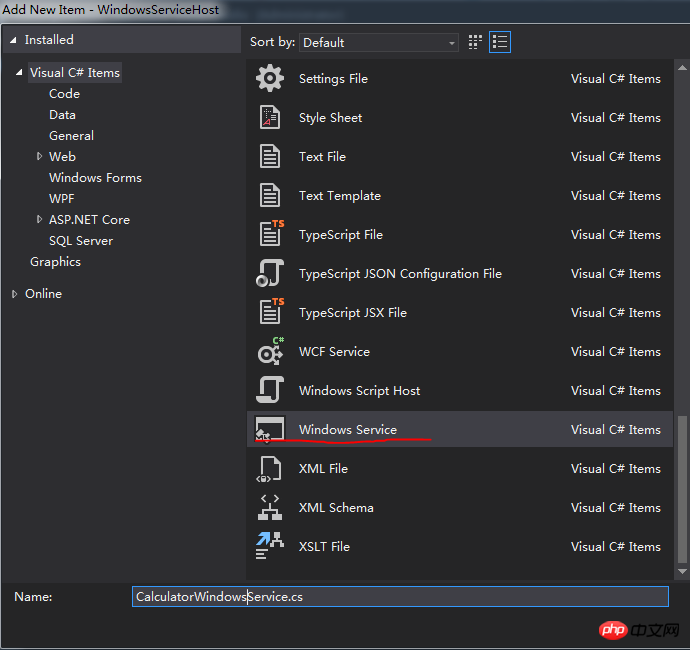 3. Remove the Service1.cs, add a new Windows Service class and name it to CalculatorWindowsService