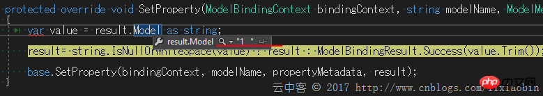 protected override void SetProperty(ModelBindingContext bindingContext, string modelName, ModelMetadata propertyMetadata, ModelBindingResult result)