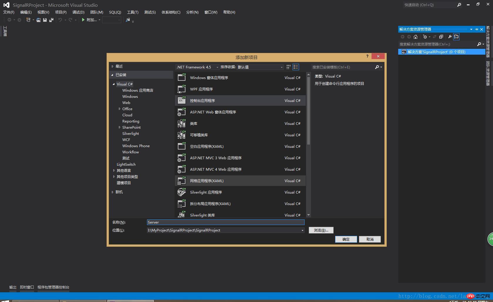 2、在 SignalRProject解决方案下新建一个名为Server的控制台