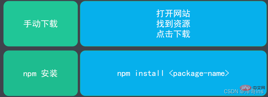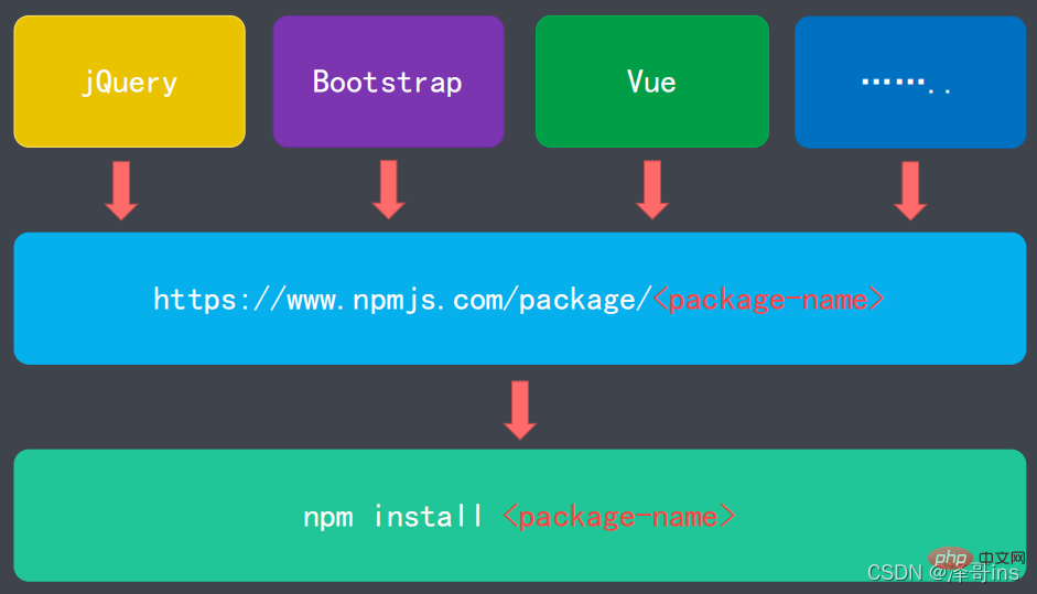 2.通过npm包管理工具安装,该包下包含了很多的前端所用到的包,再http://npmjs.com这个网站可以搜索任何的包,供我们下载安装使用。我们学习了npm包,就可以通过一条命令进行安装这些包,再也不需要找到该包的官网进行下载了。通过npm install 包的名称即可实现安装。