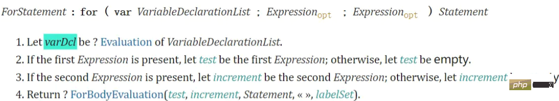 可以看到,规范对于var初始化变量没有什么特别的处理,直接就拿来用了。 此时这个变量就是个普通的var变量,和for循环处于同一作用域。