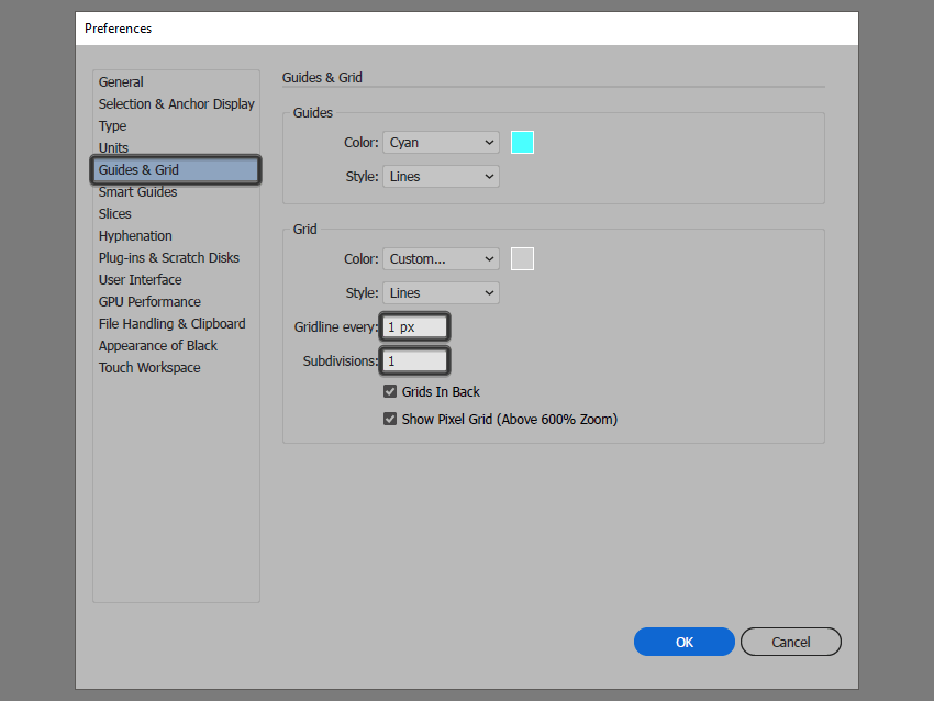现在,我知道我们今天没有在图标上工作,但由于我们将使用像素完美的工作流创建插图,因此我们需要设置一个漂亮的小网格,以便我们可以完全控制我们的形状。