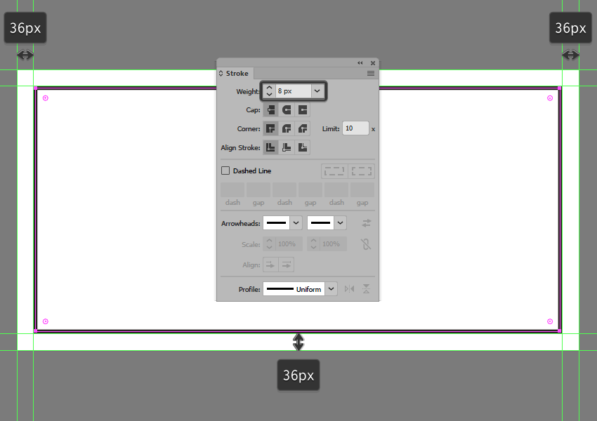 第2步、通过按下Shift-X,然后将笔画的重量设置为8像素,将刚刚创建的形状转换为轮廓,确保在完成后锁定其图层。
