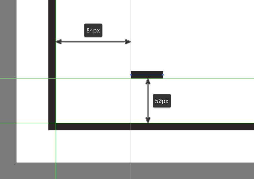 步骤1、使用36像素宽8 px厚的Stroke(#282020)创建前景的较小线段,我们将在距框架左边缘84像素和底部边缘50像素处定位。