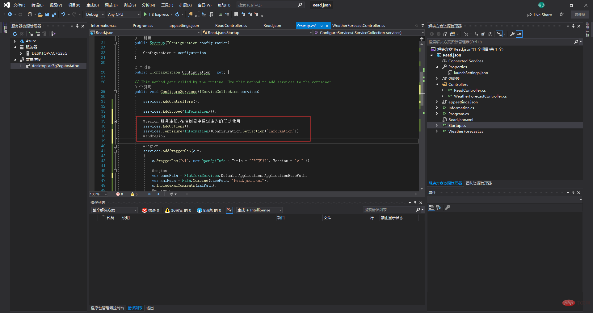 services.Configure<Information>(Configuration.GetSection("Information")); #endregion登录后复制