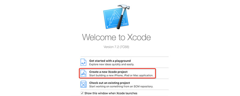 2、点击Xcode,在弹出的窗口中的左边选择Create a new Xcode project点击
