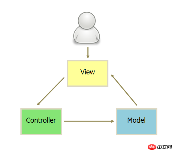 接受用户指令时,MVC 可以分成两种方式。一种是通过 View 接受指令,传递给 Controller。