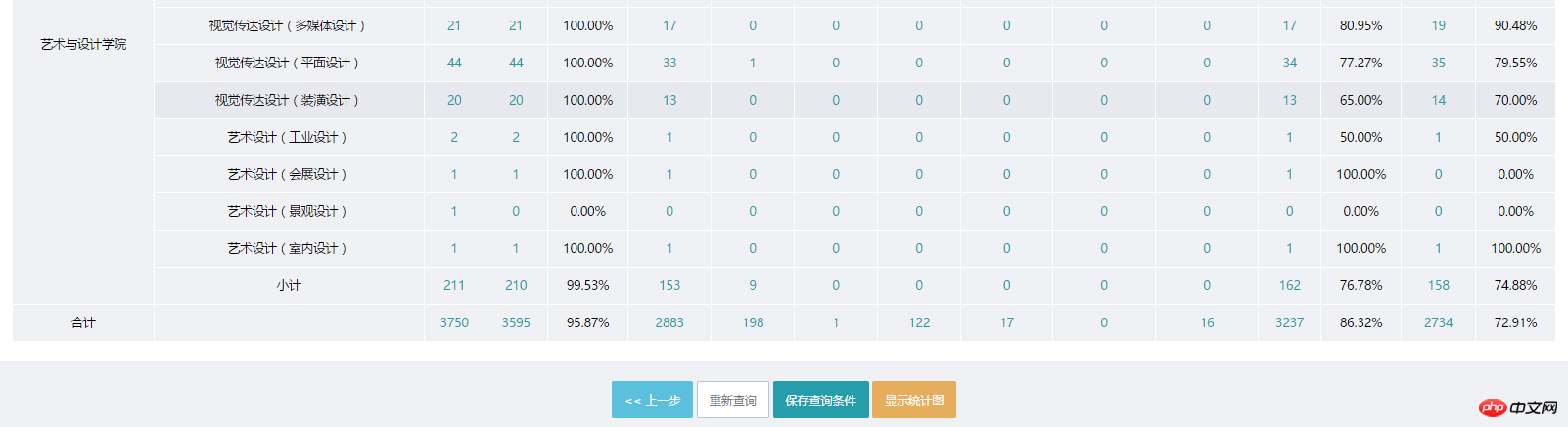 统计查询的结果,点击数字或者百分比能够显示详细的数据;