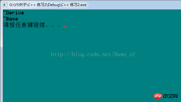 注意这里我先让父类的析构函数不为虚函数(去掉virtual),我们看看输出结果: